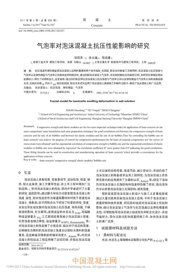 點擊下載全文:氣泡率對泡沫混凝土抗壓性能影響的研究