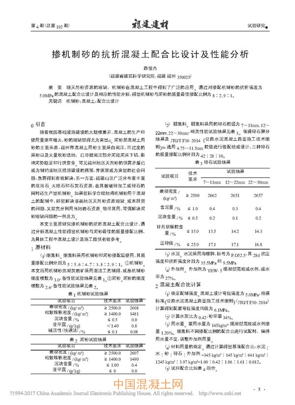 點擊下載全文:摻機制砂的抗折混凝土配合比設計及性能分析
