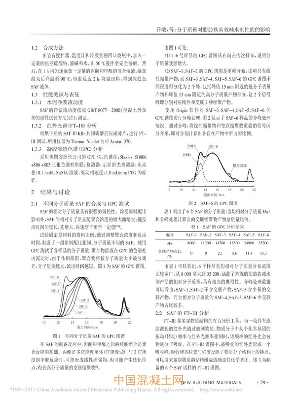 點擊下載全文:分子質量對脂肪族高效減水劑性能的影響