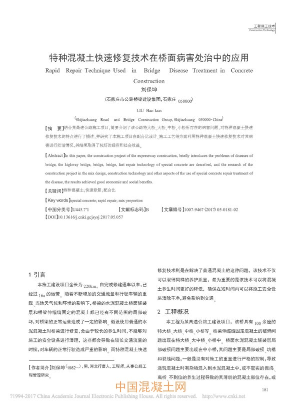點(diǎn)擊下載全文:特種混凝土快速修復(fù)技術(shù)在橋面病害處治中的應(yīng)用