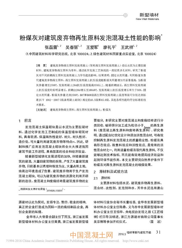 點擊下載全文:粉煤灰對建筑廢棄物再生原料發泡混凝土性能的影響