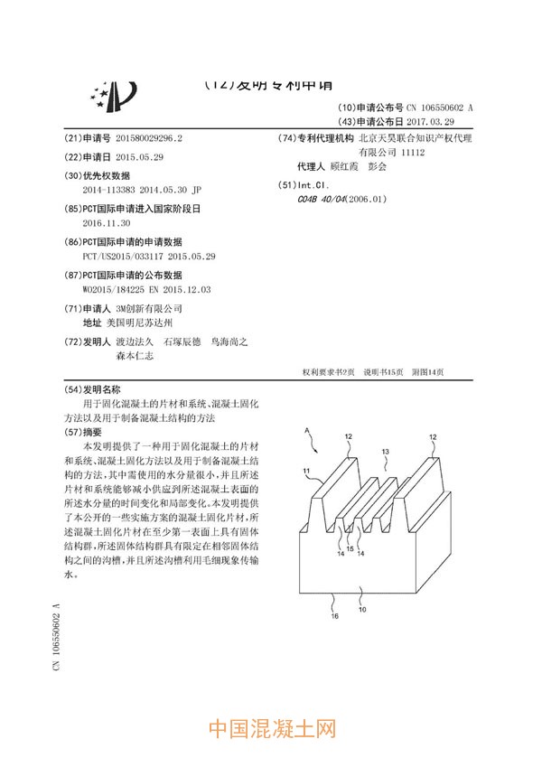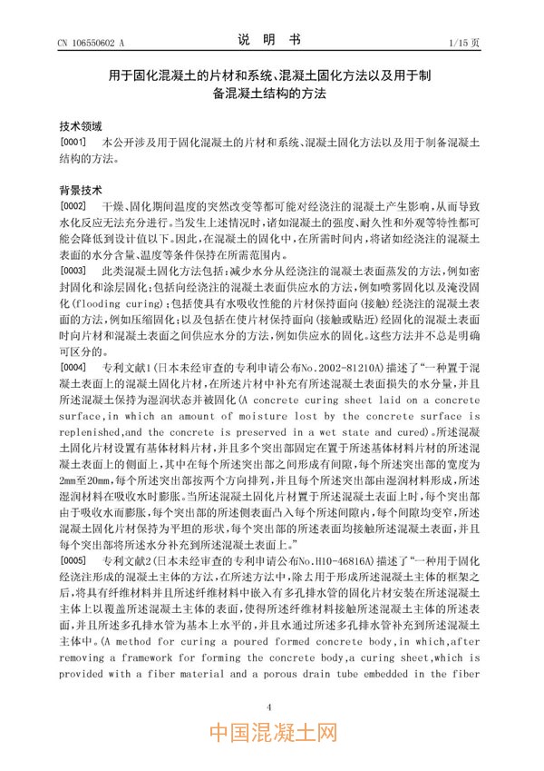 用于固化混凝土的片材和系統、混凝土固化方法以及用于制備混凝土結構的方法(公開號:CN106550602A)