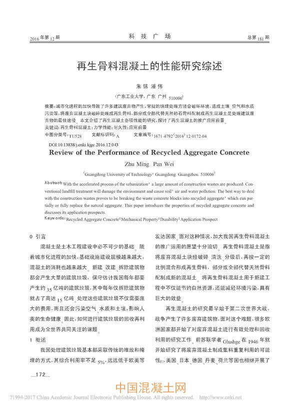 點擊下載全文:再生骨料混凝土的性能研究綜述