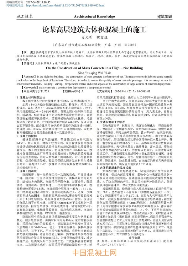 點擊下載全文:論某高層建筑大體積混凝土的施工