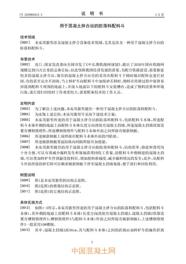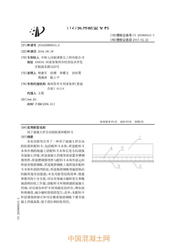 用于混凝土拌合站的防落料配料斗(公開號:CN205969515U)