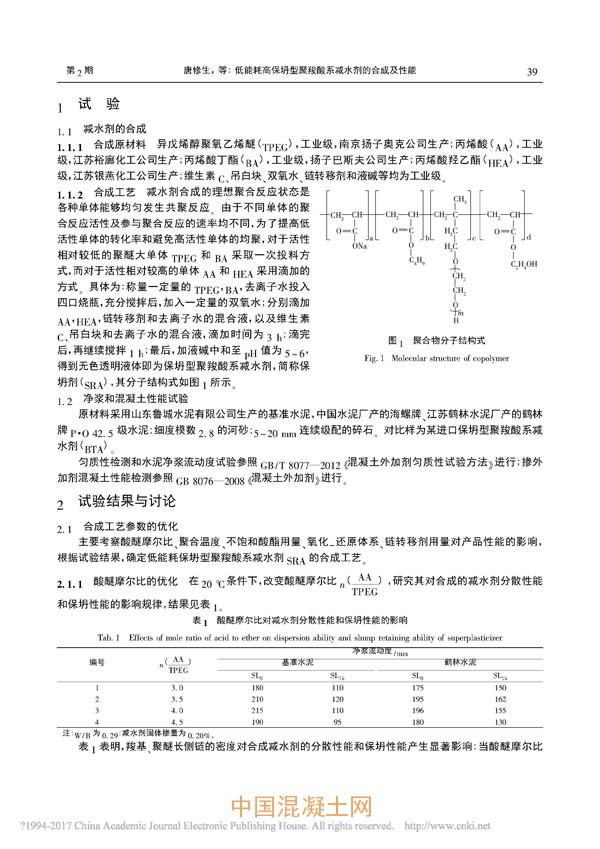 點擊下載全文:低能耗高保坍型聚羧酸系減水劑的合成及性能
