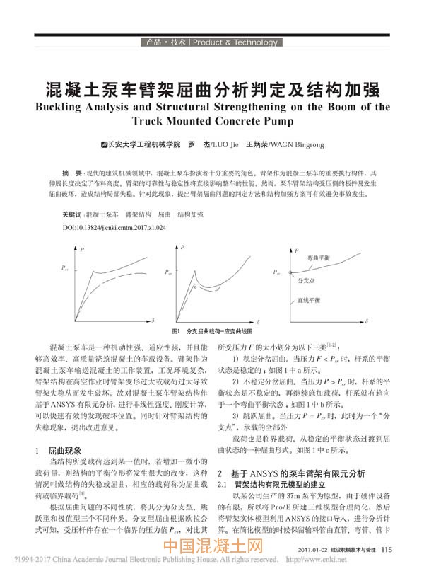 點擊下載全文:混凝土泵車臂架屈曲分析判定及結構加強