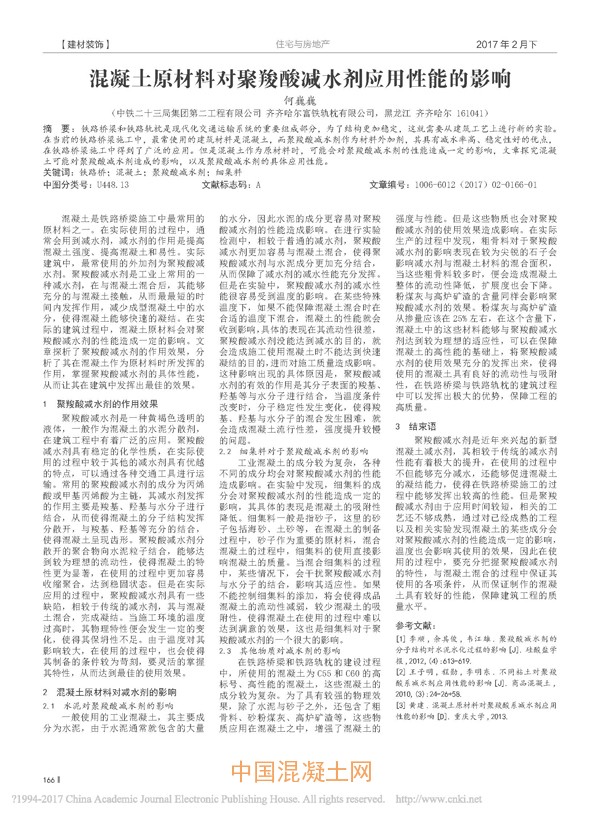 點擊下載全文:混凝土原材料對聚羧酸減水劑應用性能的影響