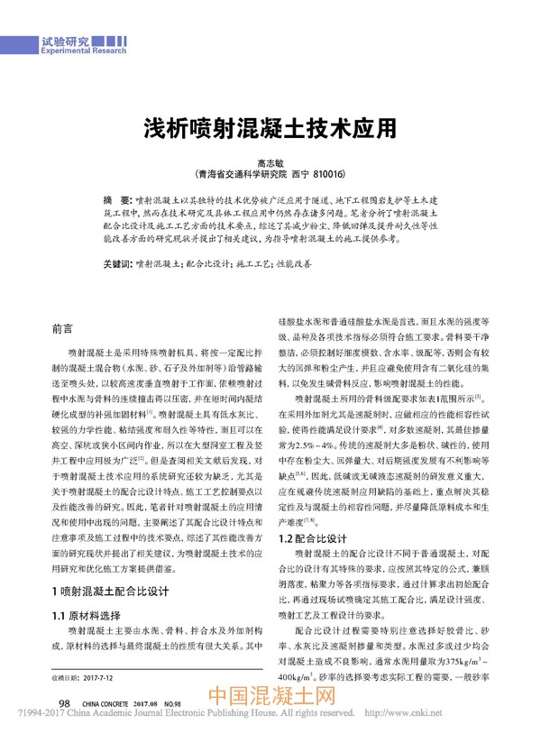 點擊下載全文:淺析噴射混凝土技術應用