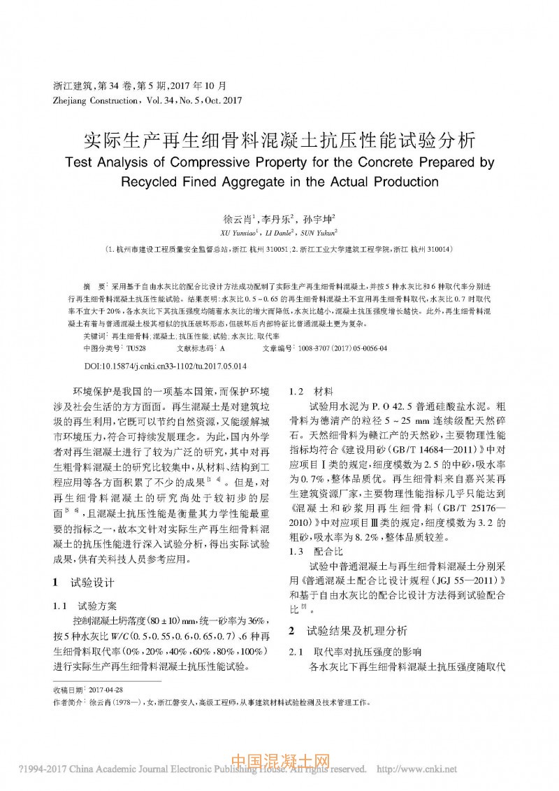 發布日期:2017-11-01 來源:中國混凝土網 作者:徐云肖 李丹樂 孫宇坤