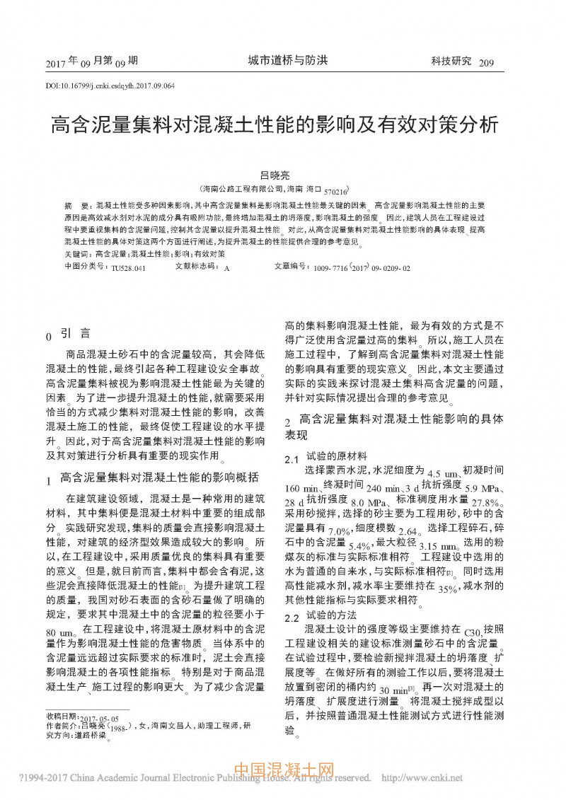 高含泥量集料對混凝土性能的影響及有效對策分析