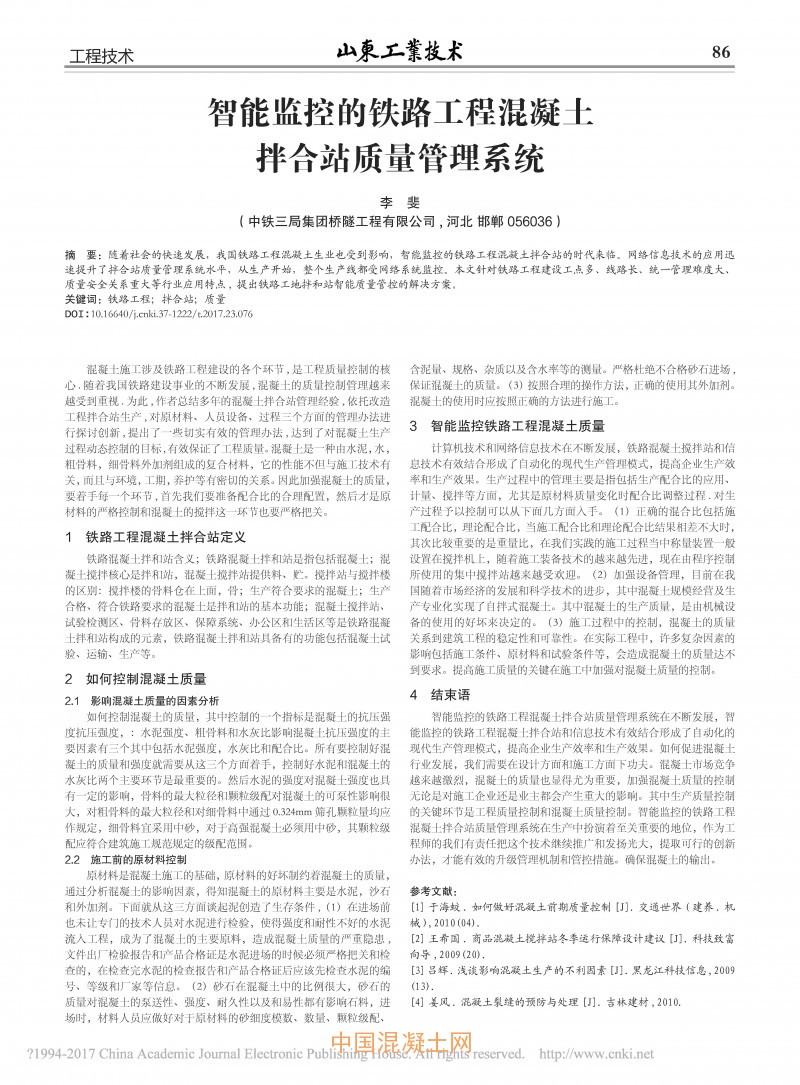 點擊下載全文:智能監控的鐵路工程混凝土拌合站質量管理系統