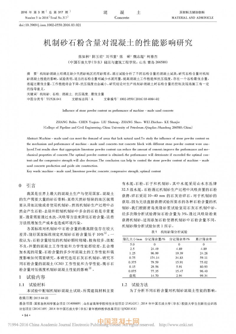 點擊下載全文:機制砂石粉含量對混凝土的性能影響研究