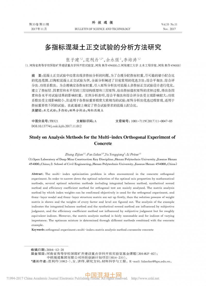 多指標混凝土正交試驗的分析方法研究