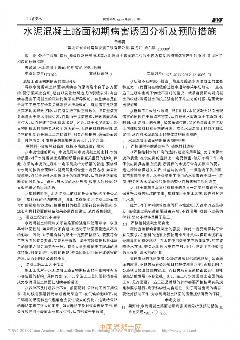 點擊下載全文:水泥混凝土路面初期病害誘因分析及預防措施