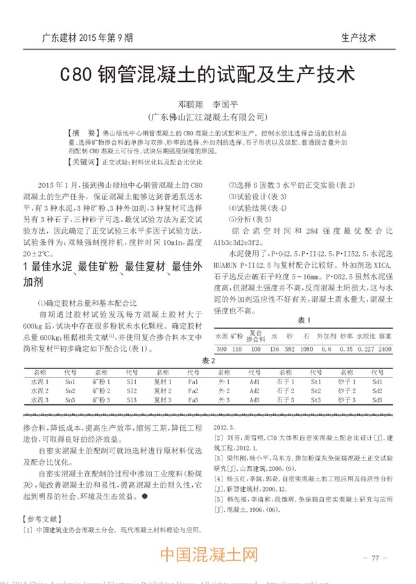 點擊下載全文:C80鋼管混凝土的試配及生產技術
