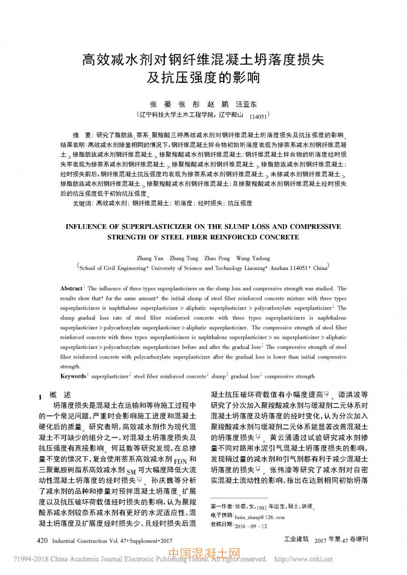 點(diǎn)擊下載全文:高效減水劑對鋼纖維混凝土坍落度損失及抗壓強(qiáng)度的影響