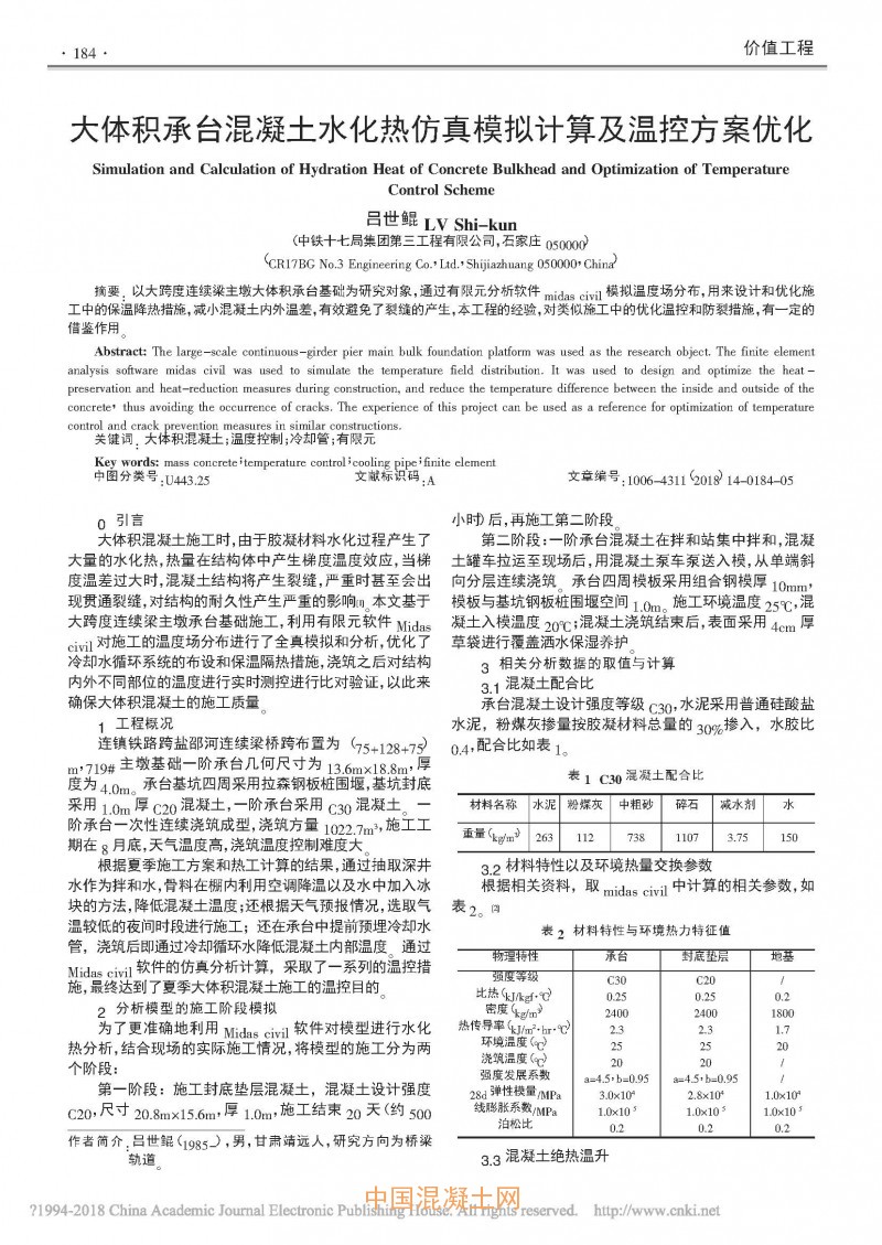 核心提示:以大跨度連續(xù)梁主墩大體積承臺基礎(chǔ)為研究對象,通過有限元分析軟件midas civil模擬溫度場分布,用來設(shè)計和優(yōu)化施工中的保溫降熱措施,減小混凝土內(nèi)外溫差,有效避免了裂縫的產(chǎn)生,本工程的經(jīng)驗,對類似施工中的優(yōu)化溫控和防裂措施,有一定的借鑒作用。