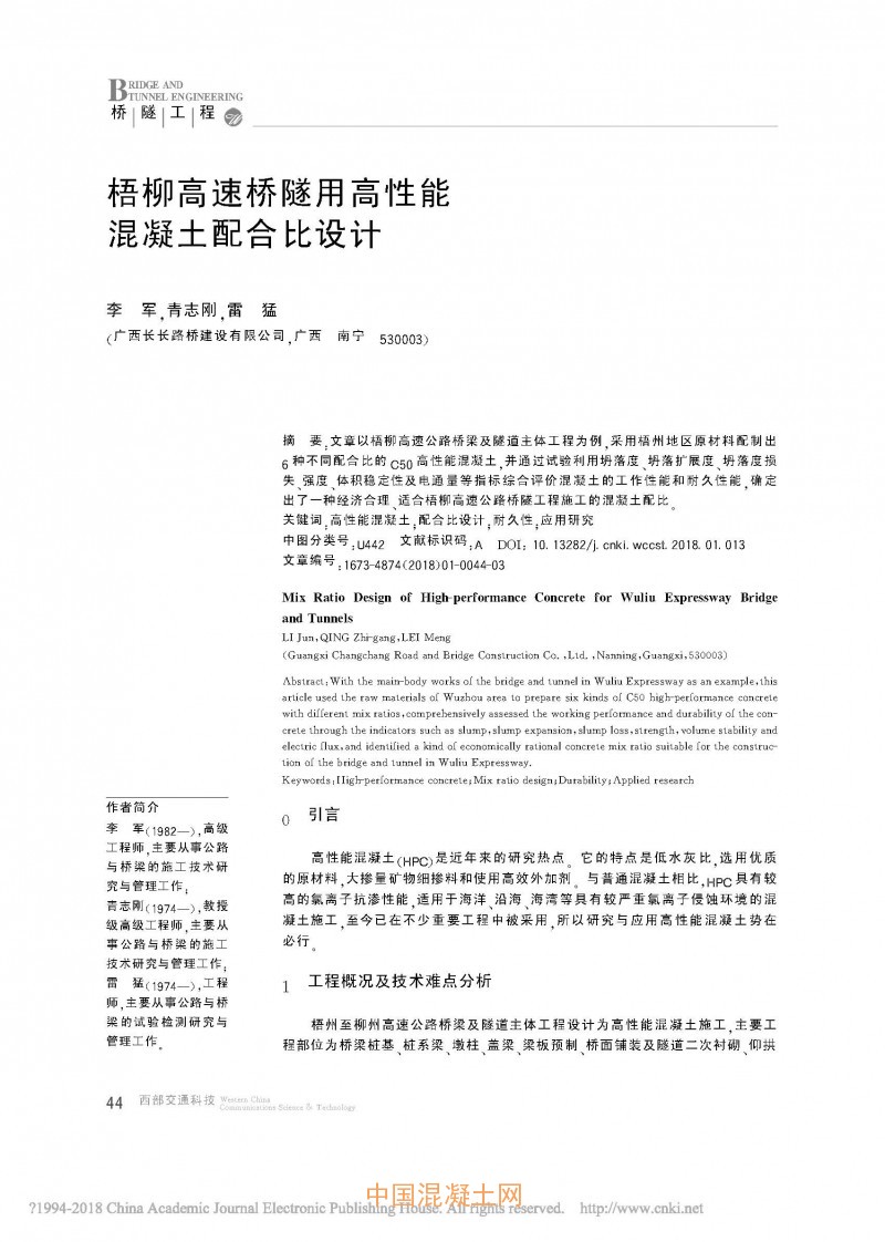 點擊下載全文:梧柳高速橋隧用高性能混凝土配合比設計