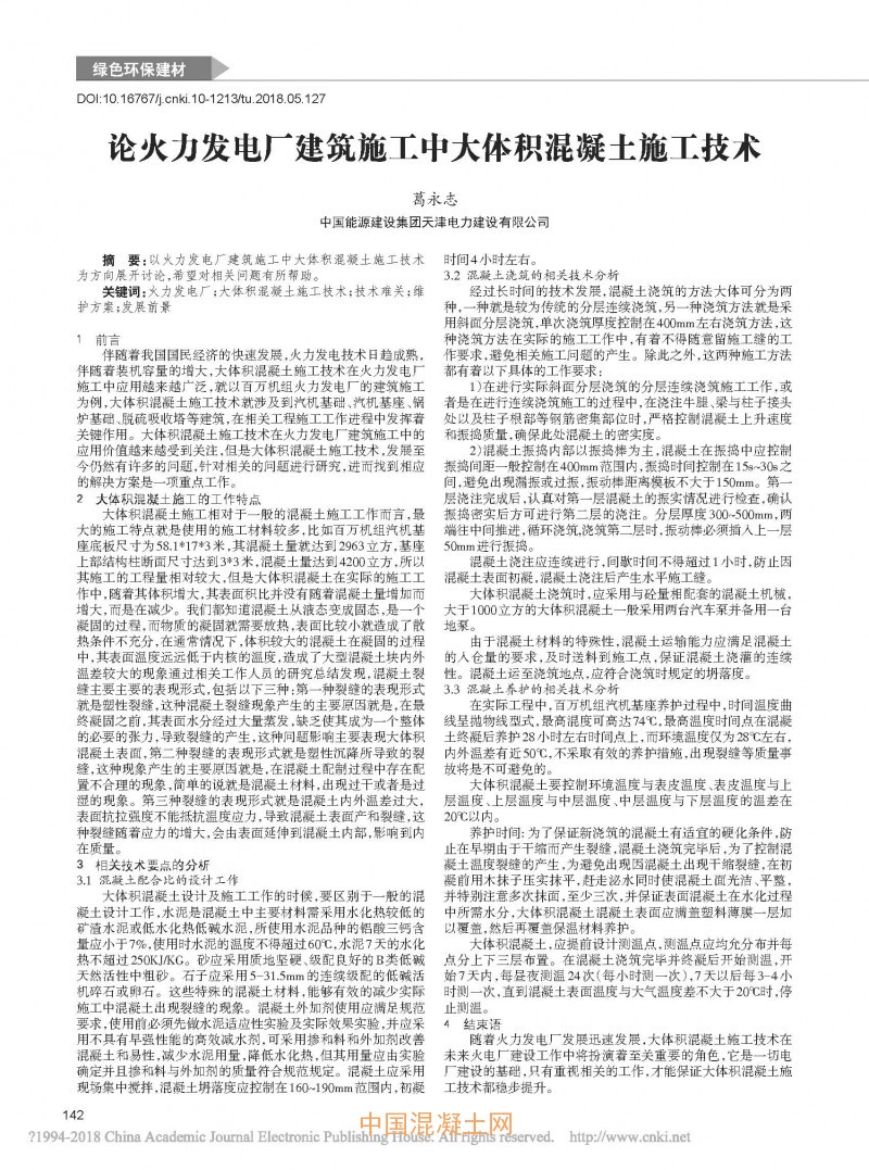 點擊下載全文:論火力發(fā)電廠建筑施工中大體積混凝土施工技術(shù)
