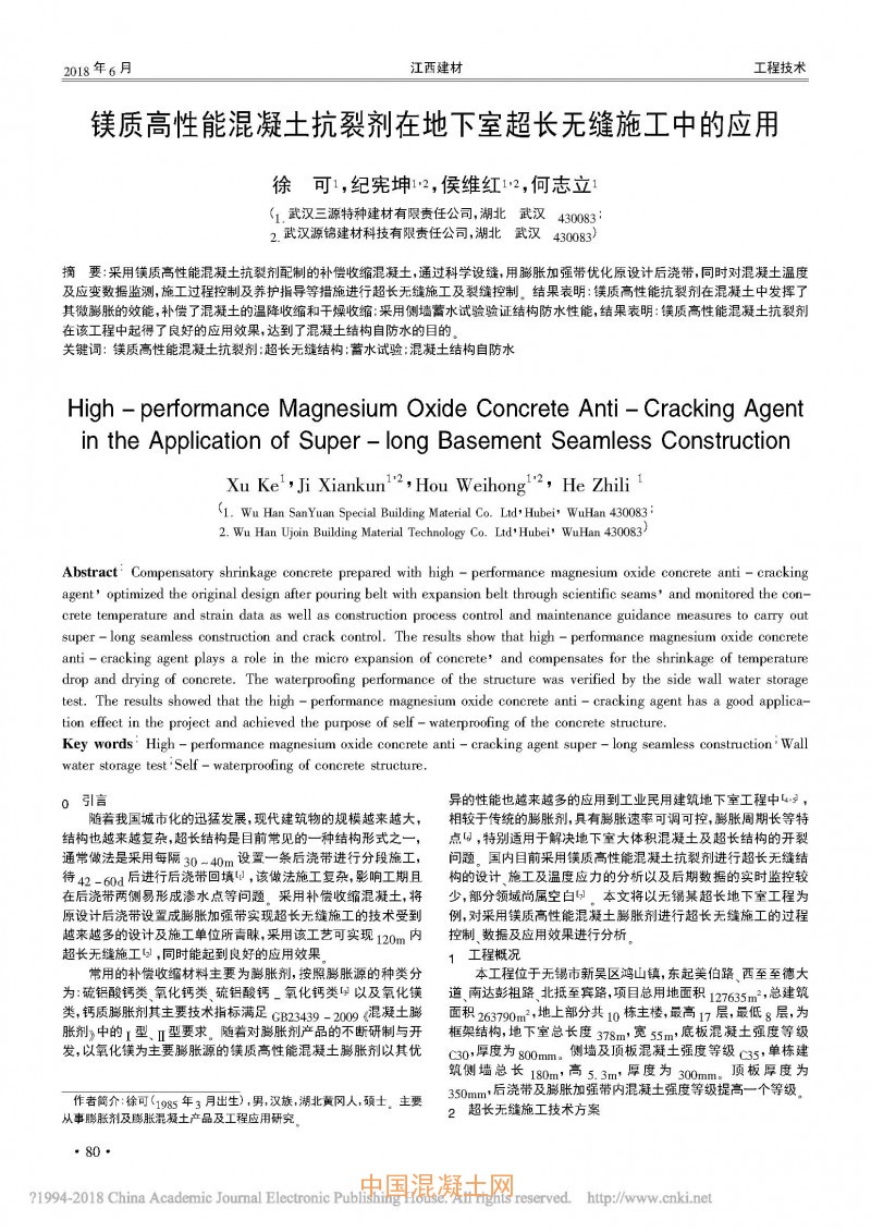 點擊下載全文:鎂質高性能混凝土抗裂劑在地下室超長無縫施工中的應用