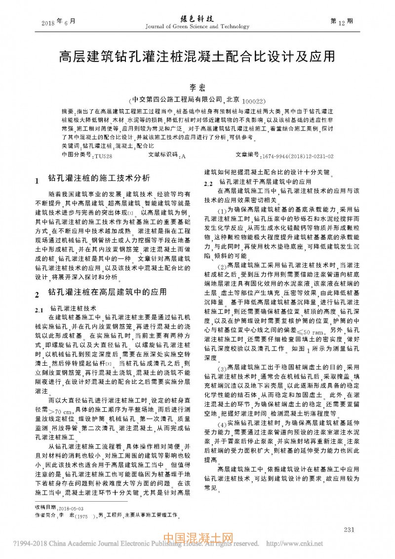 高層建筑鉆孔灌注樁混凝土配合比設(shè)計及應(yīng)用