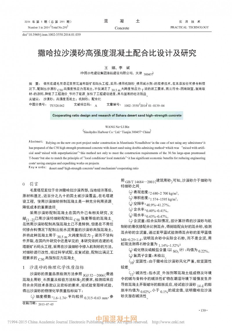點(diǎn)擊下載全文:撒哈拉沙漠砂高強(qiáng)度混凝土配合比設(shè)計(jì)及研究