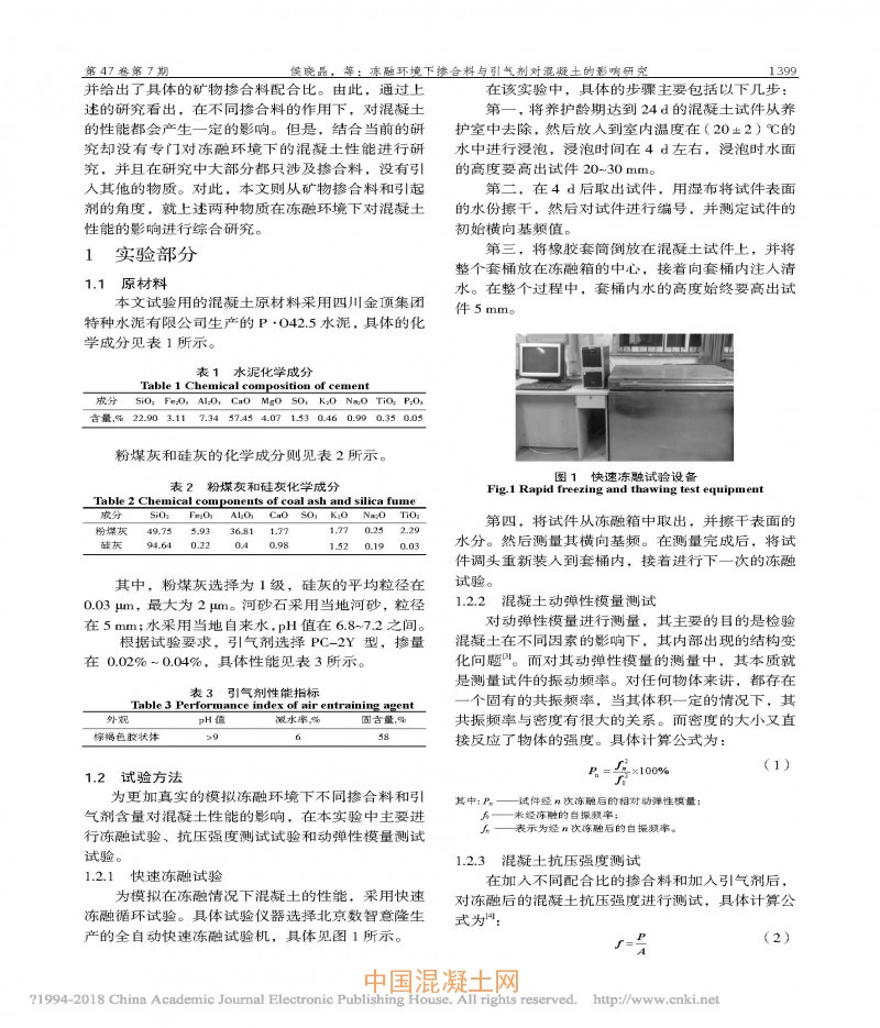點擊下載全文:凍融環境下摻合料與引氣劑對混凝土的影響研究