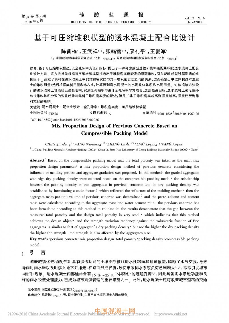 基于可壓縮堆積模型的透水混凝土配合比設計