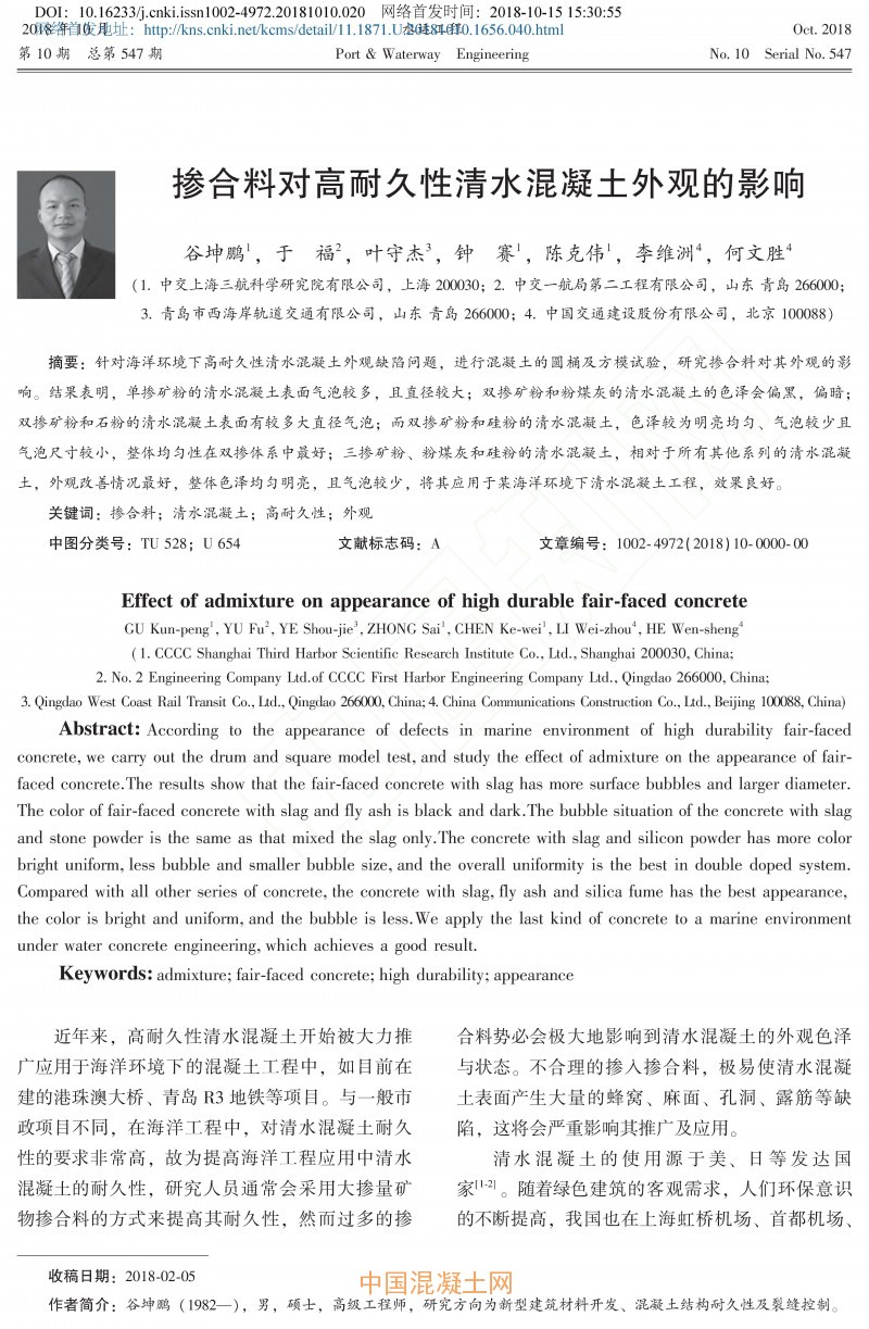發(fā)布日期:2018-10-16 來源:中國混凝土網(wǎng) 作者:谷坤鵬 于福 葉守杰 鐘賽 陳克偉 李維洲 何文勝