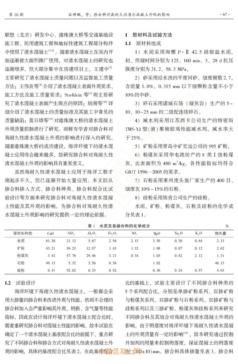摻合料對(duì)高耐久性清水混凝土外觀的影響
