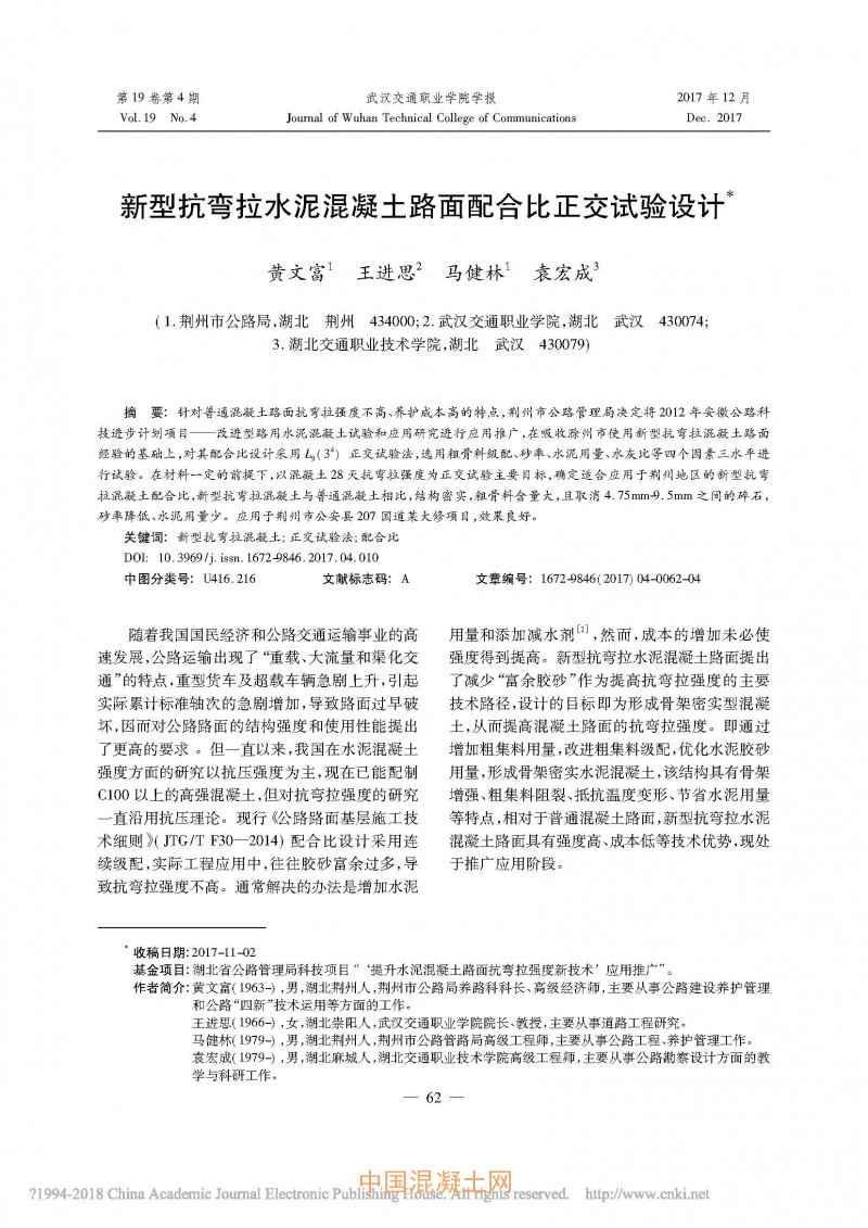 點擊下載全文:新型抗彎拉水泥混凝土路面配合比正交試驗設計