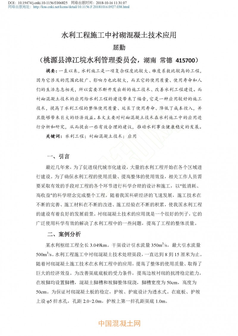 核心提示:一直以來,水利施工是一項復雜程度比較大、難度系數比較高的工程,因為它涉及的范圍比較廣、影響力也比較大,而且它的使用質量、使用壽命和人們的生活息息相關,所以需要不斷開發出新的施工技術、改善水利工程建設。而襯砌混凝土技術的應用給水利工程的建設帶來了福音,它是一種應用較好的施工技術,提高了水利工程的整體使用質量、延長了使用壽命、降低了成本投入,并且能夠帶來巨大的經濟效益。本文主要對襯砌混凝土技術在水利施工中的應用進行分析和研究,從而提出一些有效合理的建議,推動水利事業健康穩定的發展。
