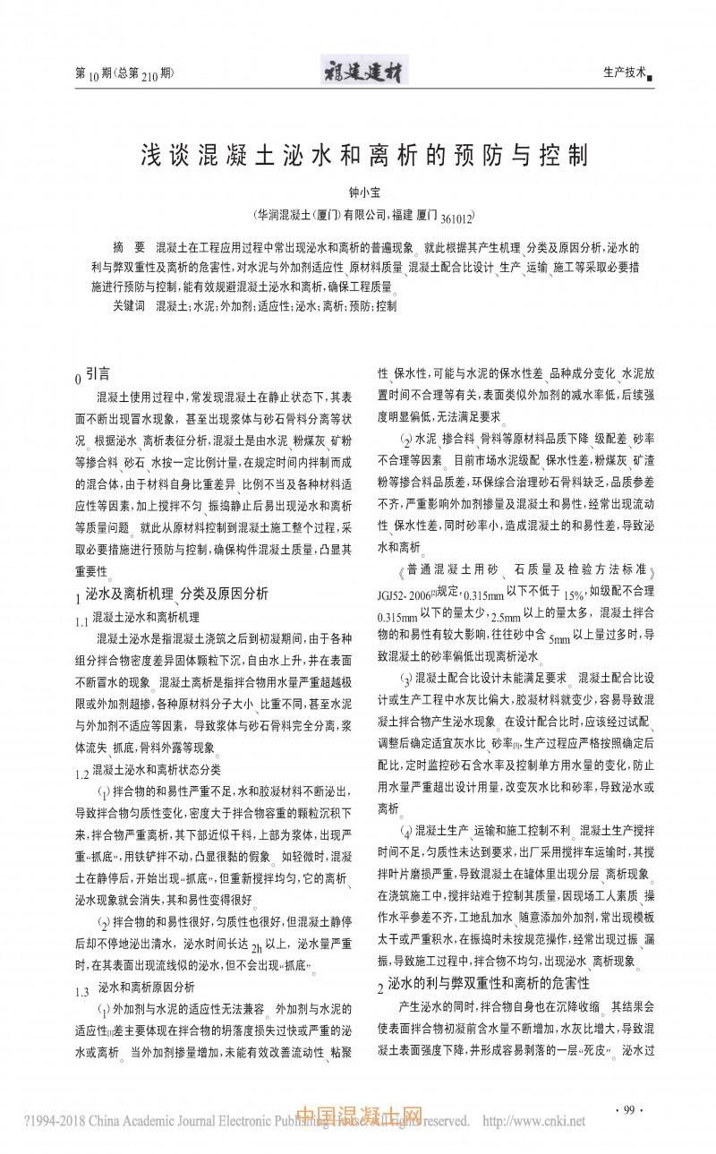 點(diǎn)擊下載全文:淺談混凝土泌水和離析的預(yù)防與控制