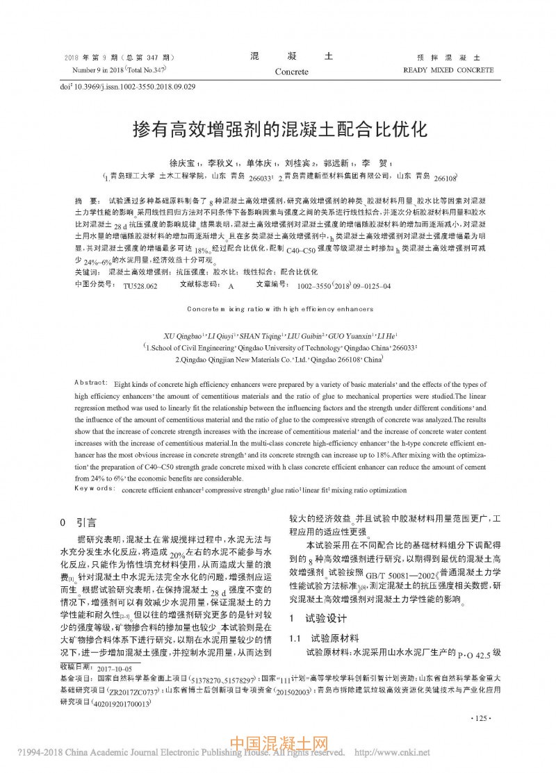點擊下載全文:摻有高效增強劑的混凝土配合比優(yōu)化