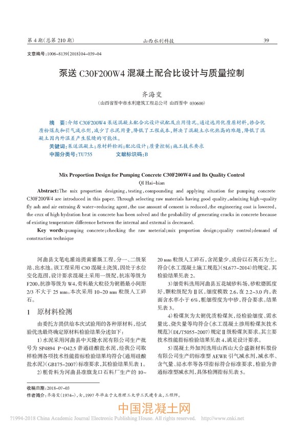 點擊下載全文:泵送C30F200W4混凝土配合比設計與質量控制