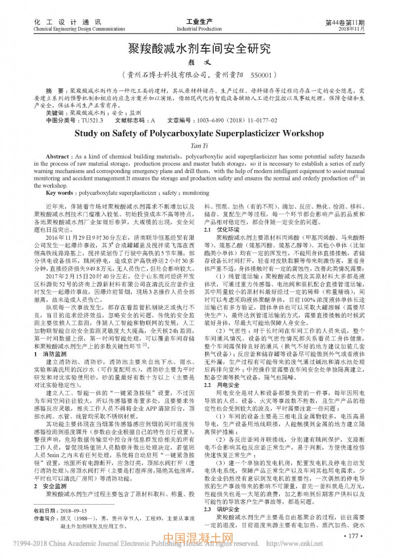 點(diǎn)擊下載全文:聚羧酸減水劑車間安全研究