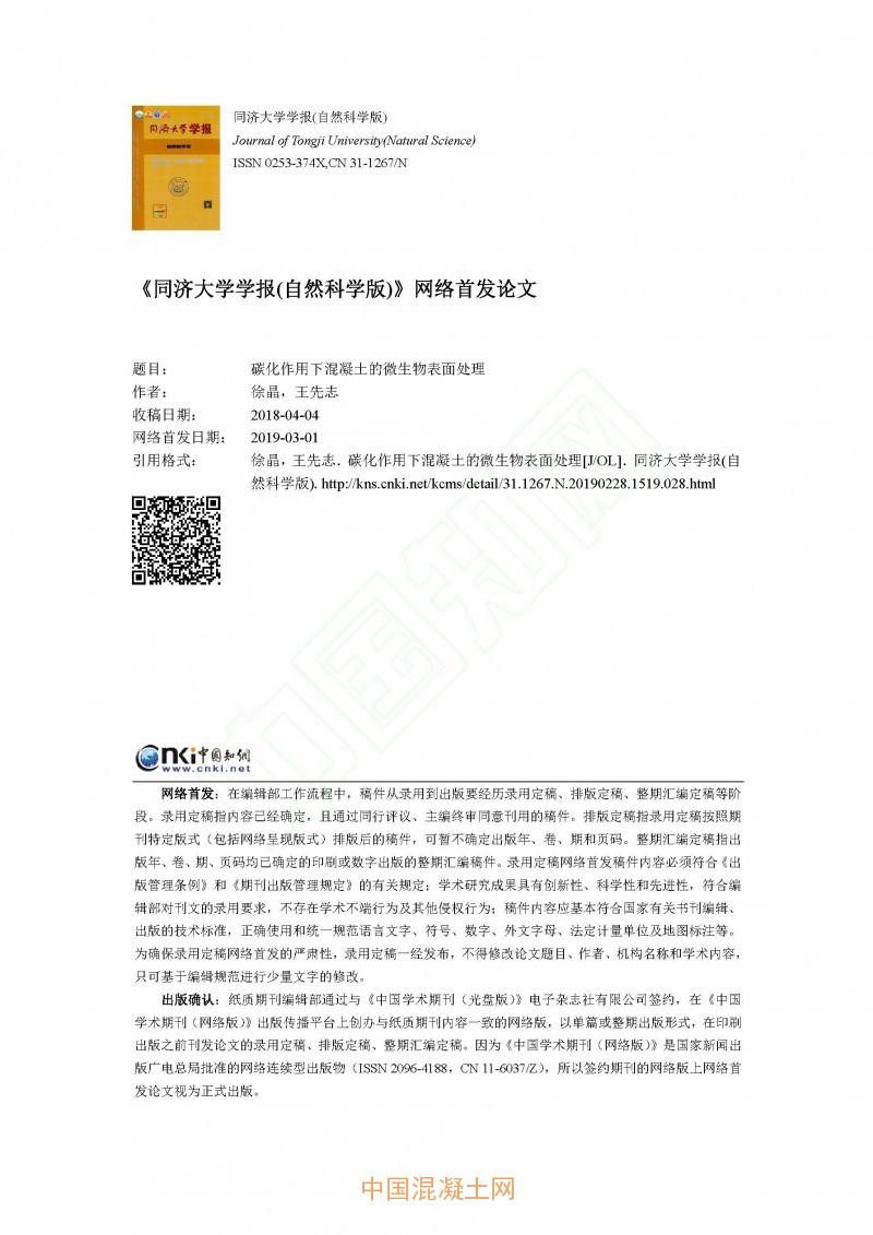 碳化作用下混凝土的微生物表面處理