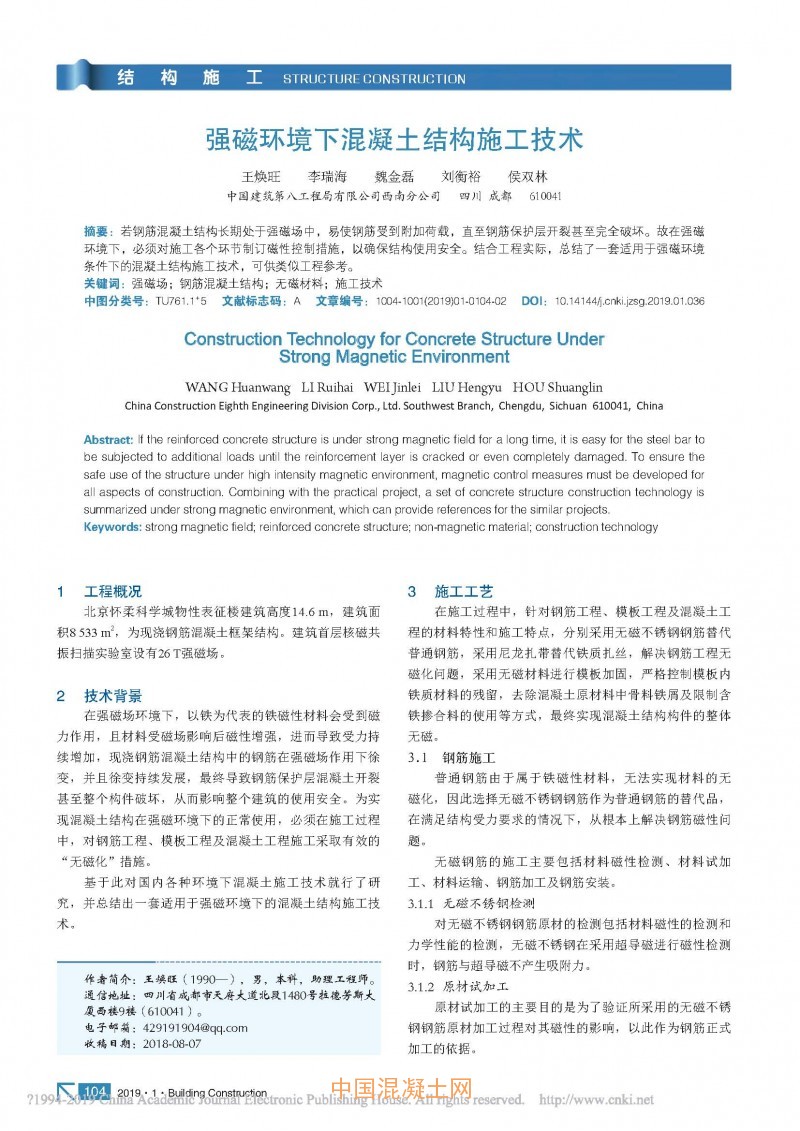 點擊下載全文:強磁環境下混凝土結構施工技術