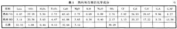 本試驗采用預分解窯熟料YS和立窯熟料BD,使用了相同的二水石膏,摻量為4% ,它們的化學成分見表1。