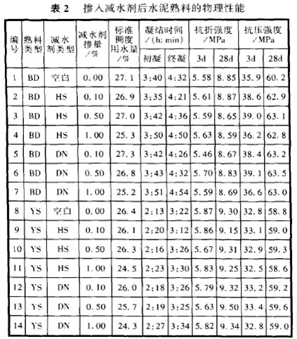 2.1.2 高效減水劑對水泥熟料物理性能的影響