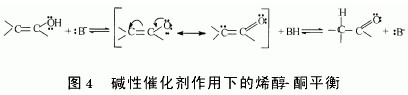 羥醛縮合反應中經常采用的堿性催化劑,其包括堿性化合物(堿金屬或堿土金屬的氧化物、氫氧化物、碳酸氫鹽、碳酸鹽和羧酸鹽)、有機胺類化合物以及陰離子交換樹脂等。實際工業應用中,羥醛縮合反應所選用的堿性催化劑,可以是弱堿(如碳酸鈉、碳酸氫鈉、醋酸鈉),也可以是強堿(如氫氧化鈉、氫氧化鈣、氫化鈉、醇鈉等)。前者一般用于活性較大的醛之間的縮合,產物多為β 羥基化合物;后者則用于活性較小、空間位阻大的醛或酮之間的縮合,且反應多在非質子極性溶劑中進行。堿催化的烯醇 酮平衡如下: