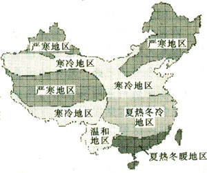 表 1-3 寒冷地區、溫和地區劃分參考表 ( ℃)