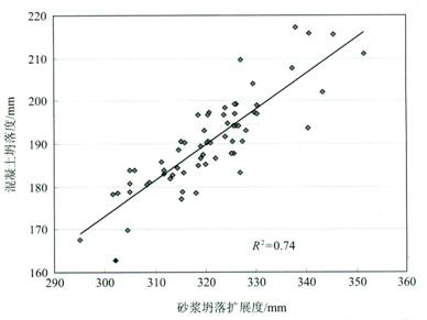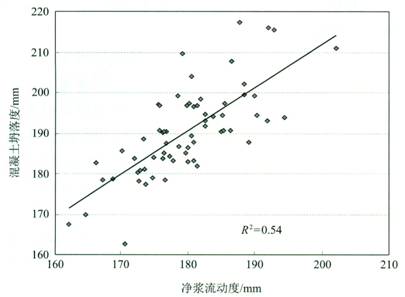 2) 定期以混凝土坍落度檢驗結果評價本廠水泥與高效減水劑的相容性,同時評價凈漿流動度檢驗結果和混凝土坍落度的相關性。