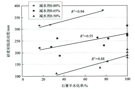 圖 6 石膏半水化率與砂漿初始流動度的關系