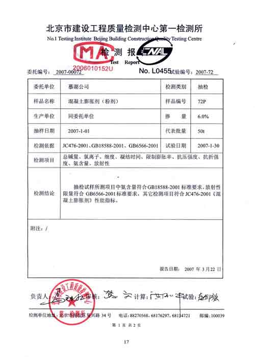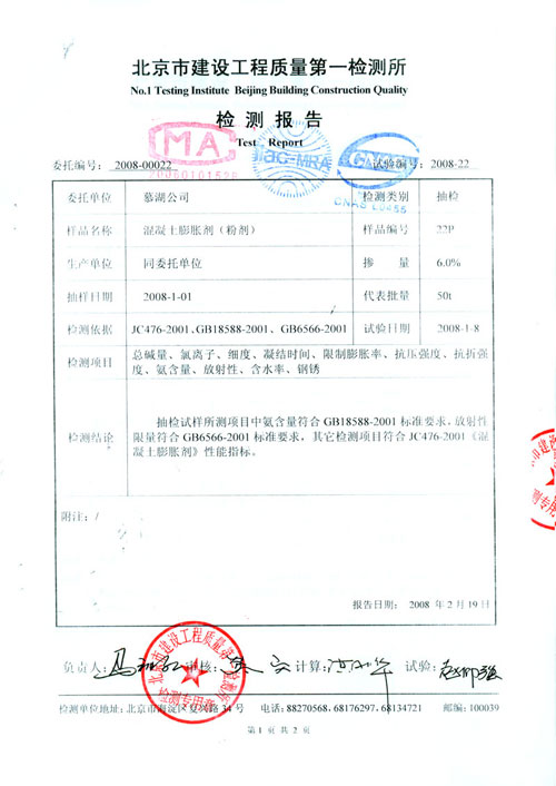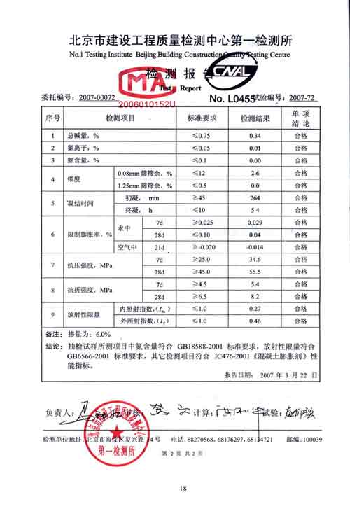 Technical requirements Executive standard:JC476-2001 concrete expansive agent
