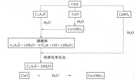 “鈣釩石系”和“石灰系”膨脹劑的化學(xué)反應(yīng)模式