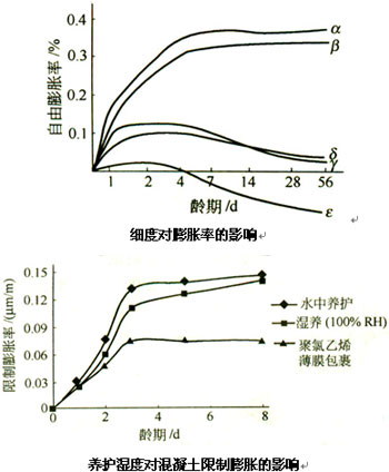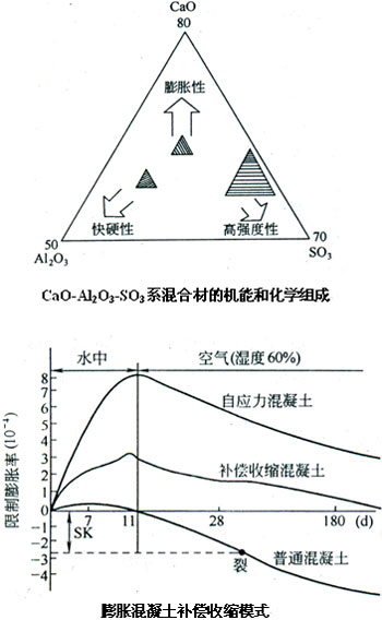6 )摻入不同品種的外加劑在補(bǔ)償收縮混凝土中會(huì)產(chǎn)生不同的效果,因此,使用時(shí)需經(jīng)過試驗(yàn)后才能確定。