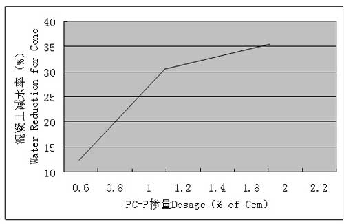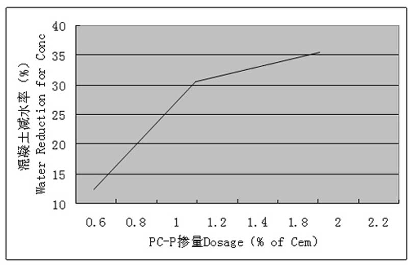 PC-P1 具有高減水率,其加入量比傳統(tǒng)高效減水劑(蜜胺系,萘系)加入量少 6~10 倍。