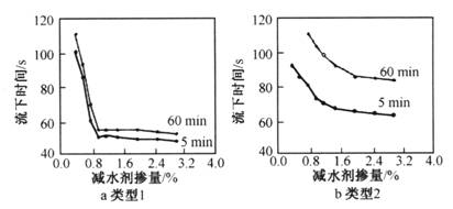 PC-P1 的保坍性是傳統(tǒng)高效減水劑的 2~5 倍且它的凝結時間比其他類聚羧酸減水劑更短。